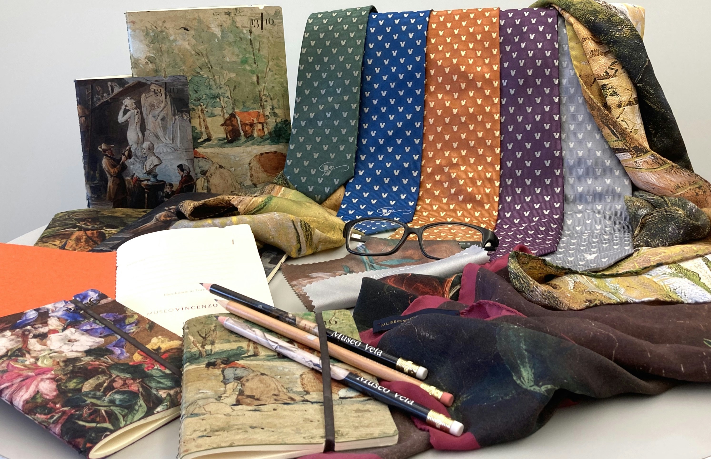 Ma è comunque possibile acquistare il regalo giusto in una sorta di mercatino virtuale. Nello shop del Museo sono in vendita numerose idee-regalo: giochi e articoli di cancelleria, ombrelli, ventagli e zainetti, o ancora piccoli oggetti per la cucina come il salva-goccia o i magneti con le immagini del Museo. Sono arrivate anche le cravatte firmate Vela con i nuovi colori, i foulard in pura seta al 100%, oltre a giochi artistici per i più piccoli.