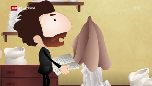 La RSI ha inoltre realizzato un corposo dossier storico (a cura di Francesca Cogoni) accompagnato da materiali d’archivio, come un servizio di Aldo Patocchi del 1961 con rare immagini del Museo di allora e testimonianze di chi aveva conosciuto lo scultore. E c’è pure un divertente disegno animato (della serie Helveticus, dedicata agli eroi della Confederazione) che mostra Vela in battaglia e all’opera, con tanto di topolino d’atelier (nella foto). Sempre sulla stessa pagina Internet del dossier, si possono rivedere i film veliani, che ripercorrono la vita dello scultore e il suo periodo storico: «Vincenzo Vela. Arte e mito» di Tiziano Gamboni e Mirto Storni, «La libera caduta degli angeli» di Linda Della Casa, «Vincenzo Vela. Lo scultore della libertà» di Luigi Giuliano Ceccarelli, e «W Verdi, Giuseppe. Come e perché l’Opera fece l’Italia, forse...» di Davide Livermore e Roberta Pedrini.