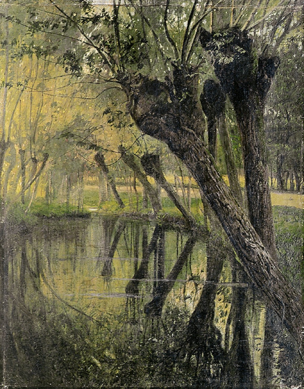 L'autore si divise biograficamente tra Ticino e Lombardia, animato da spirito patriottico nelle vicende risorgimentali. Molto presente nella sua pittura è la lezione di Gaetano Fasanotti, cui anche questo paesaggio allude nel taglio arioso dell'immagine e nell'equilibrato approccio naturalistico al tema.